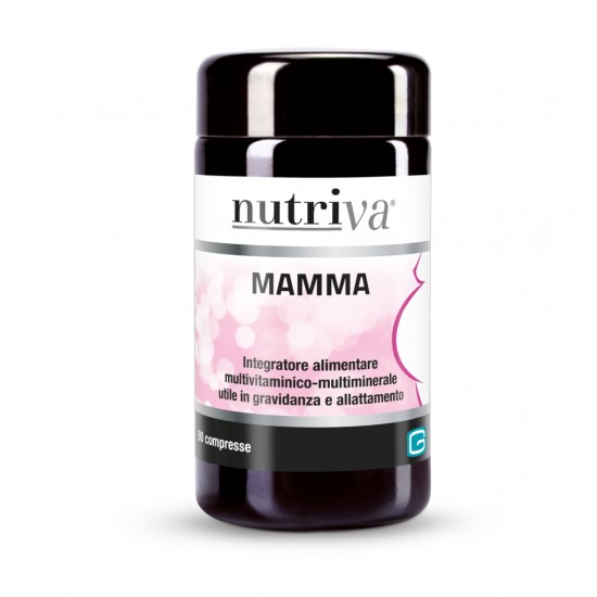 Integratore alimentare multivitaminico e multiminerale completo utile per soddisfare le esigenze dell’organismo materno durante la gravidanza e l’allattamento. L’integrazione con vitamine e minerali è molto importante, oltre ad una alimentazione varia e bilanciata, in gravidanza e allattamento per compensare le maggiori richieste metaboliche dell’organismo. In gravidanza le richiesta metaboliche maggiori, rilevate da numerosi studi sono emerse essere quelle di calcio, ferro e vitamina B12. Nutriva MAMMA fornisce un apporto giornaliero completo di vitamine e minerali, comprensivo di calcio, ferro altamente biodisponibile, vitamina C naturale, lattoferrina, beta-carotene, zinco, selenio, iodio, vitamina B12 e vitamina D3. Il prodotto è privo di zuccheri, sale, amido, glutine, lievito, coloranti e aromi artificiali, OGM. Contiene derivati del latte. Adatto a vegetariani.