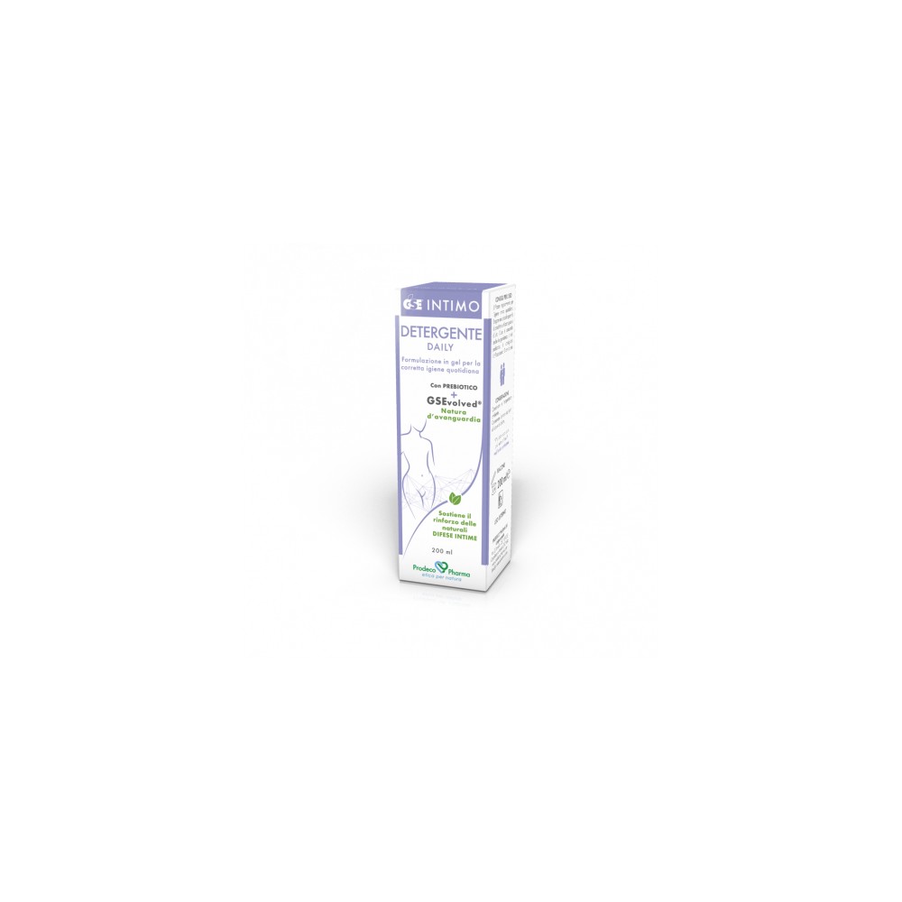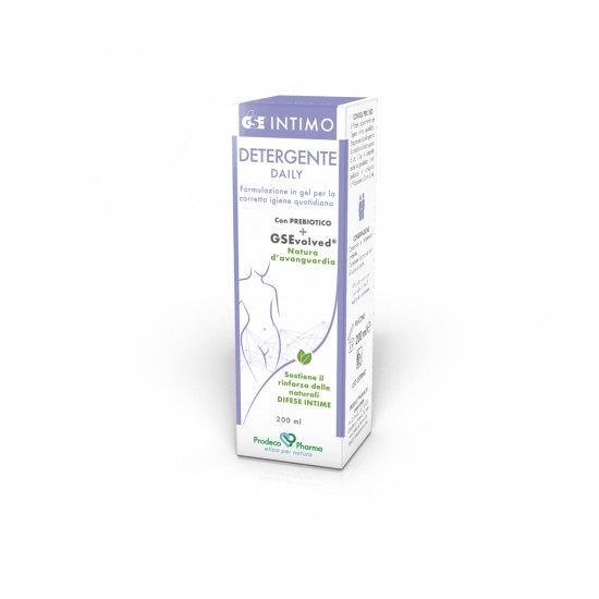 GSE Intimo Detergente Daily è un prodotto in forma di gel, a base di estratti vegetali. L’Opuntia, l’Ulivo e la Calendula conferiscono un’azione emolliente e lenitiva sulla pelle e sulle mucose. L’Estratto di semi di Pompelmo potenziato dal processo di iperfermentazione (GSEvolved®) svolge un’azione antiossidante. Le fibre prebiotiche svolgono un’azione di riequilibrio del microbiota delle parti intime e hanno un’azione protettiva della barriera cutanea. I derivati della glicerina favoriscono l’idratazione della pelle attraverso le acquaporine. La presenza di Acido lattico favorisce il fisiologico equilibrio dell’ecosistema vaginale. Il pH fisiologico specifico per le parti intime esterne e l’origine vegetale delle sostanze funzionali permette l’utilizzo di GSE Intimo Detergente Daily anche sulle pelli più sensibili e delicate.