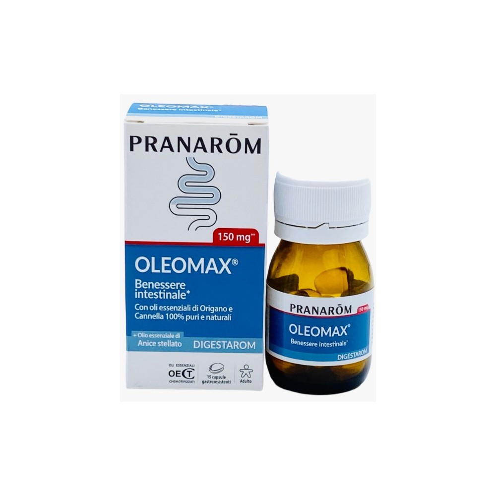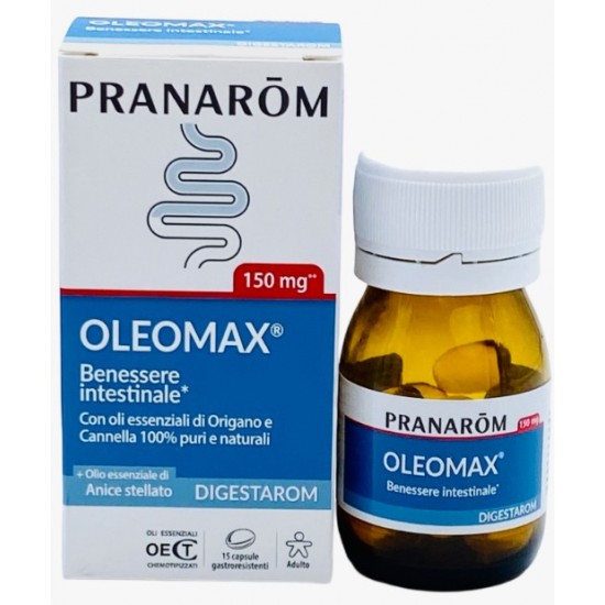 Pranarom Oleomax è un integratore alimentare con una miscela esclusiva di oli essenziali di Origano e Cannella, con attività antinfettiva combinata con oli essenziali di Cumino, Anice stellato e Limone, che favoriscono la funzione digestiva e la regolare motilità gastrointestinale.
