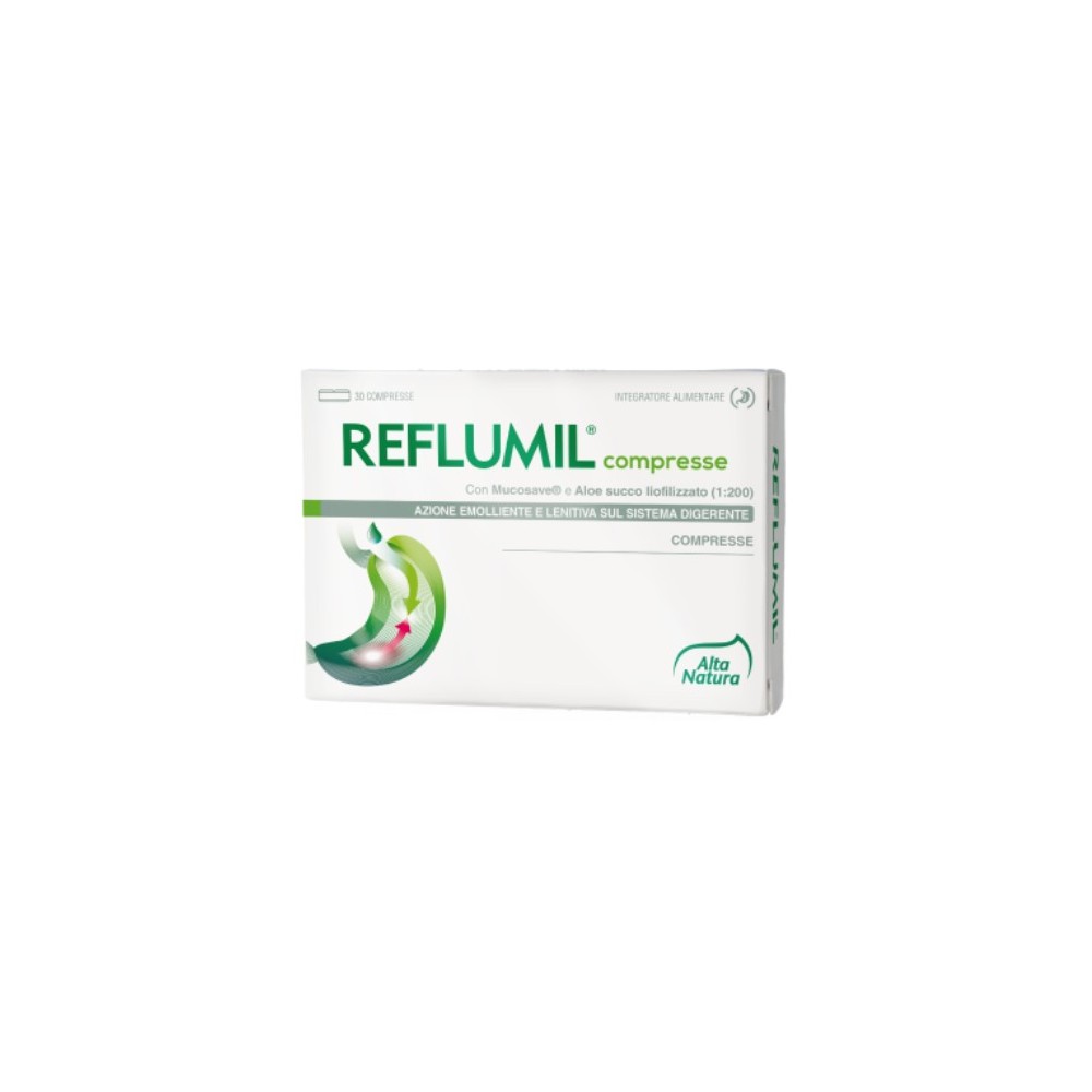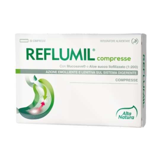 Reflumil è un integratore a base di succo liofilizzato (1:200) d'Aloe vera, estratto Mucosave (costituito da polisaccaridi derivanti da Opuntia e polifenoli contenuti nell'Olivo), con sodio alginato e bicarbonato di sodio.