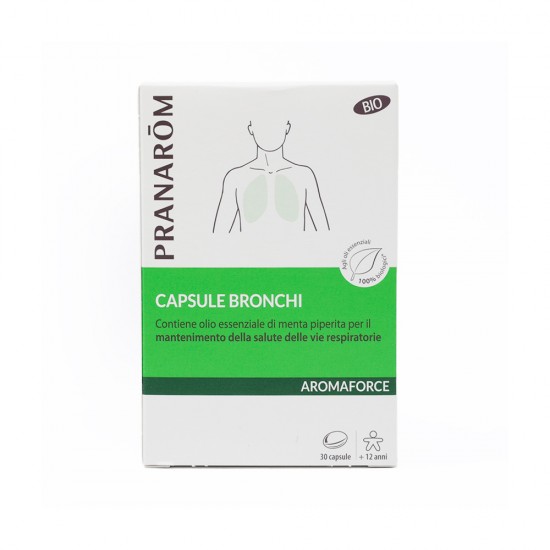 Le capsule Bronchi decongestionano le vie respiratorie: gli oli essenziali di Origano compatto, Cannella della Cina, Menta piperita e Limone aiutano a contrastare le aggressioni esterne, facilitano la respirazione e aiutano l'organismo a modulare le difese naturali.