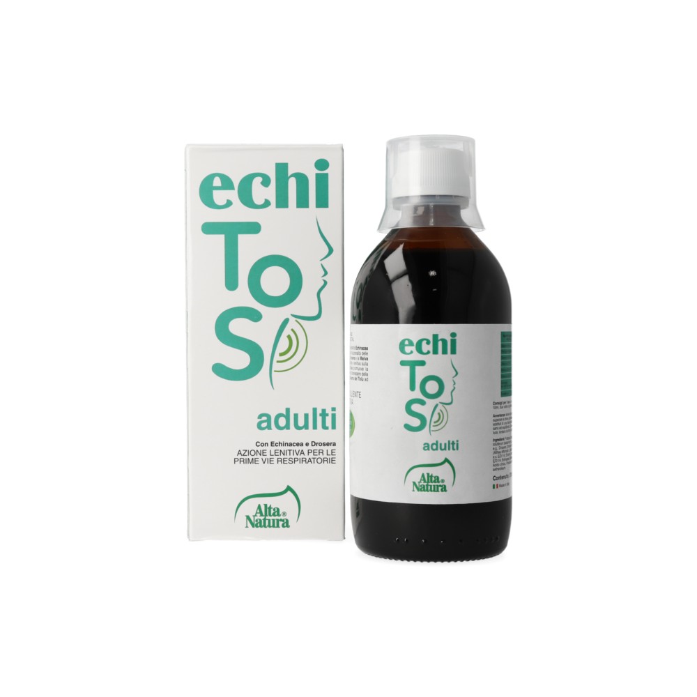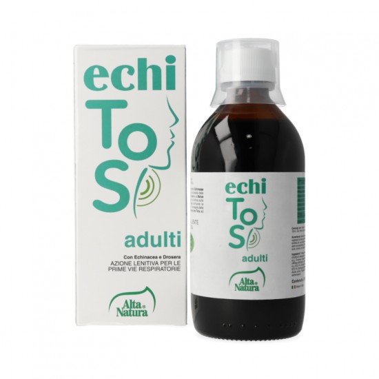 Echitos Adulti con i principi attivi contenuti negli estratti di Echinacea e Piantaggine favoriscono la funzionalità delle prime vie respiratorie. La Drosera e la Malva presentano azione emolliente e lenitiva sulla mucosa orofaringea.