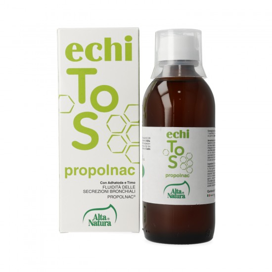Echitos Propolnac a base di Propolnac® miscela di Propolis M.E.D.® con N-Acetilcisteina. Arricchito con estratti di Adhatoda e Timo utili per la fluidità delle secrezioni bronchiali e il benessere di naso e gola.