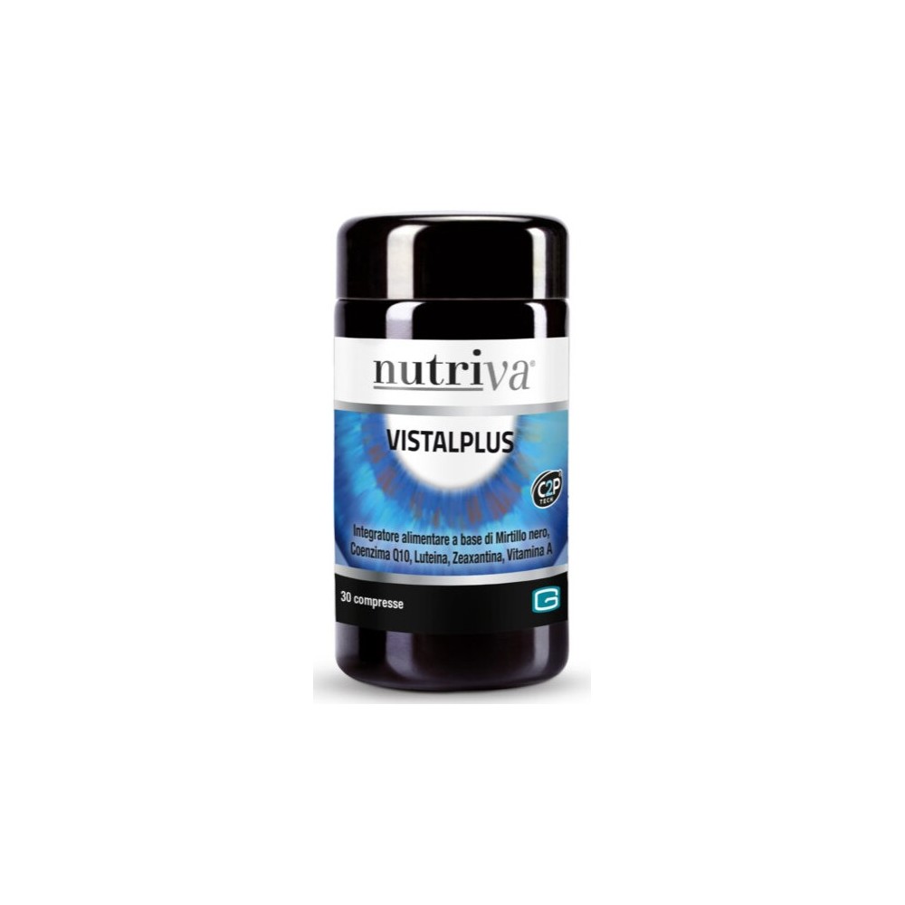 Nutriva Vistalplus è un integratore alimentare con Mirtillo e Tagete ad azione antiossidante e per il benessere della vista. Arricchito con Coenzima Q10. Con Vitamina A che contribuisce al mantenimento della capacità visiva normale.